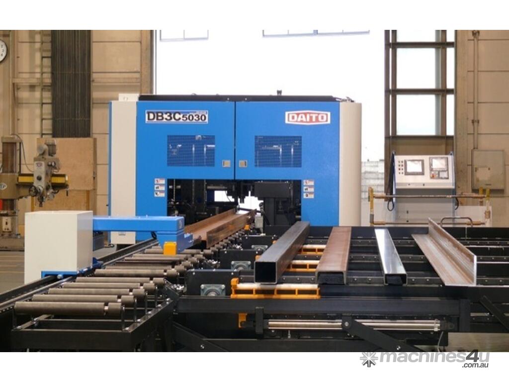 Daito DB3C Combined Drill Saw incorporates a 3 spindle drill and a high speed bandsaw and combines them into one super fast and ultra efficient beam drilling sawing line.